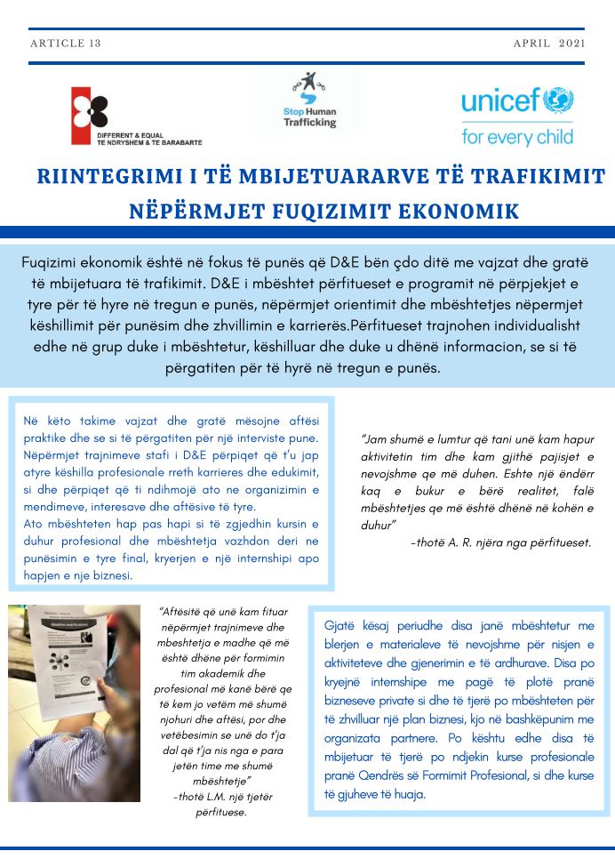 Riintegrimi i të Mbijetuararve të Trafikimit Nëpërmjet Fuqizimit Ekonomik